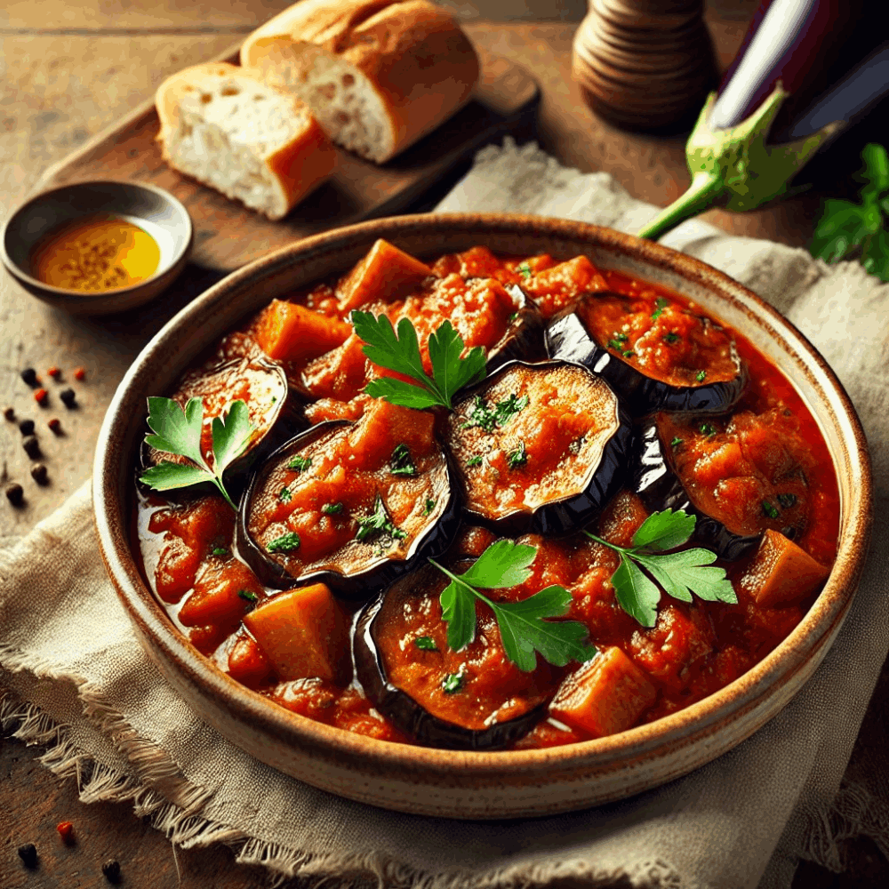 Enjoy the rich, earthy flavors of this simple Mediterranean eggplant stew.