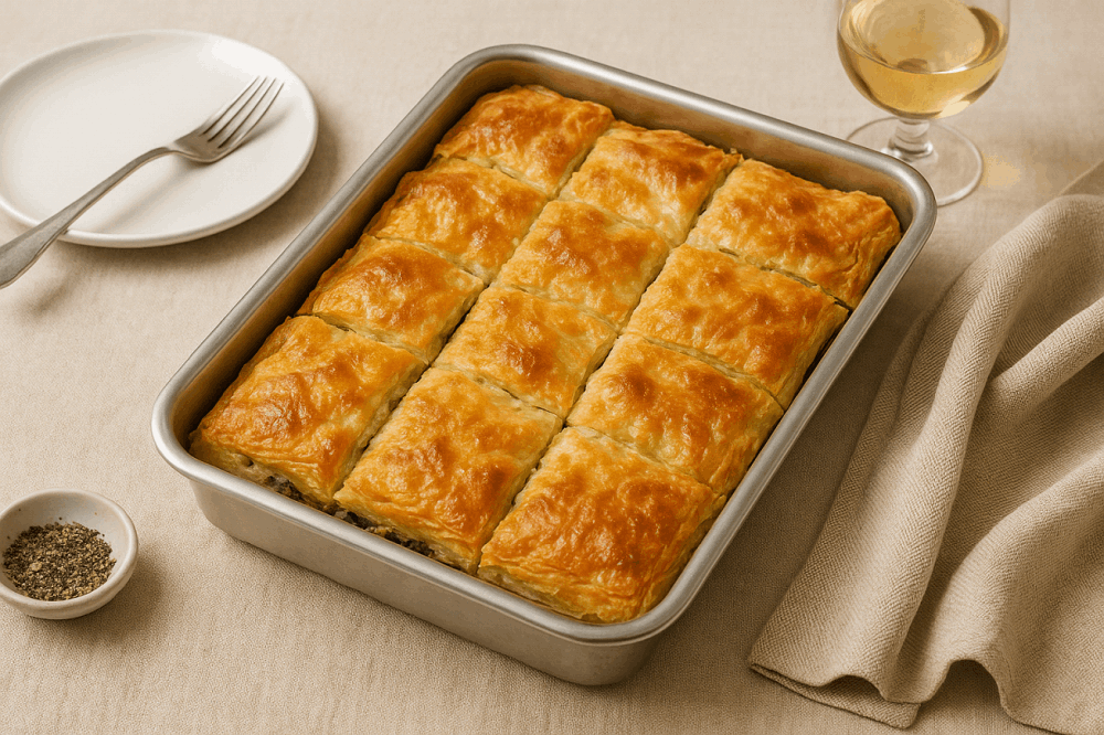 A staple at family gatherings and mezze tables, this comforting dish offers golden, flaky texture and bold flavor in every bite.