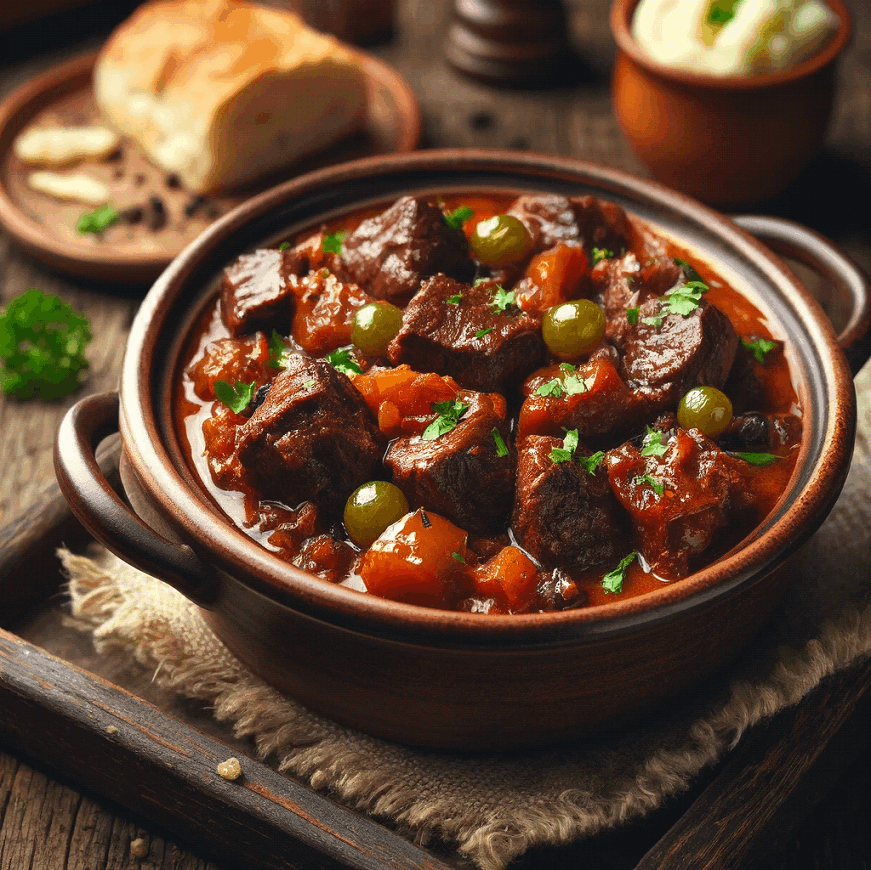 Immerse yourself in the rich, complex flavors of Beef with Raisins, a unique French dish that marries tender beef with the natural sweetness of raisins and the tanginess of a tomato-based sauce.