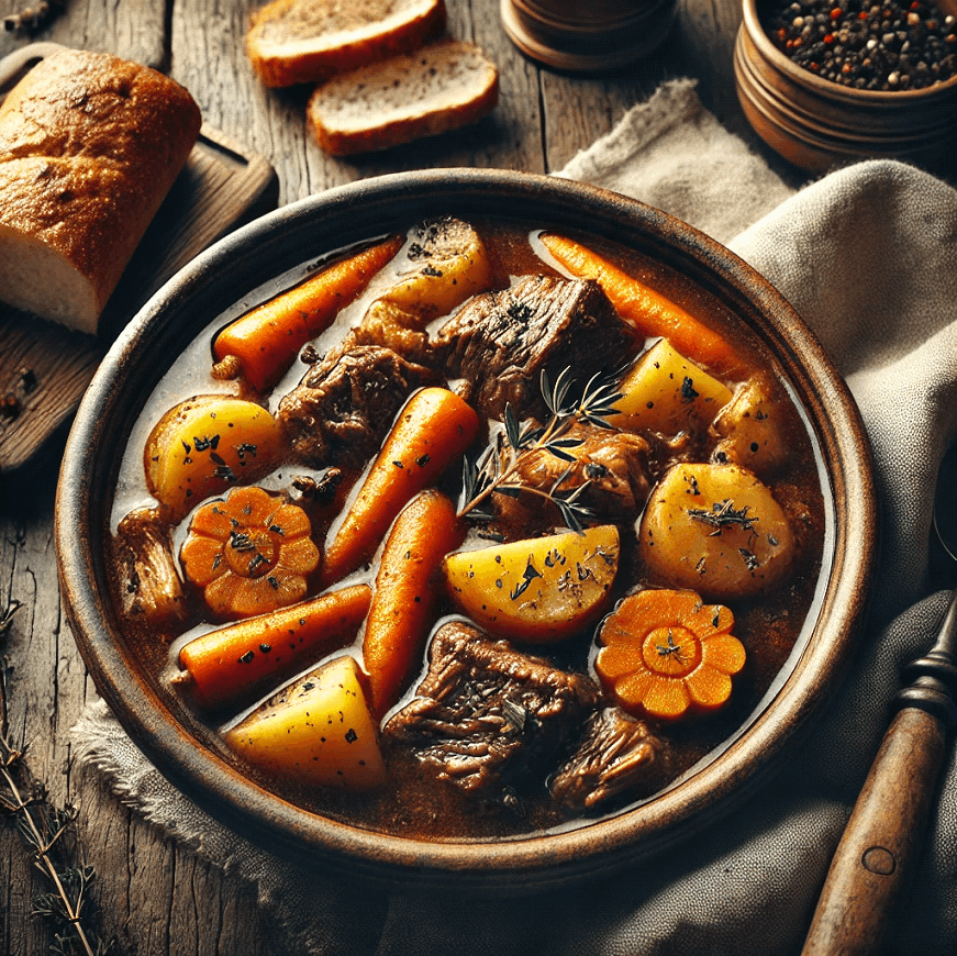 Warm your soul with Pot-au-Feu—a classic French stew of tender beef, flavorful poultry, and hearty vegetables simmered in aromatic broth.