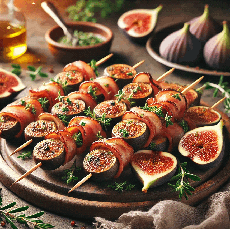 Elevate your barbecue or appetizer spread with these Fig and Bacon Skewers, a delightful French-inspired dish combining fresh figs, aromatic herbs, and the savory richness of bacon.