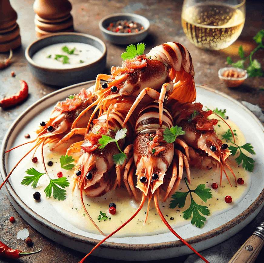 Bring the flavors of French sophistication to your table with Langoustines with Bacon, a dish that combines the delicate sweetness of langoustines with the smoky richness of bacon lardons.