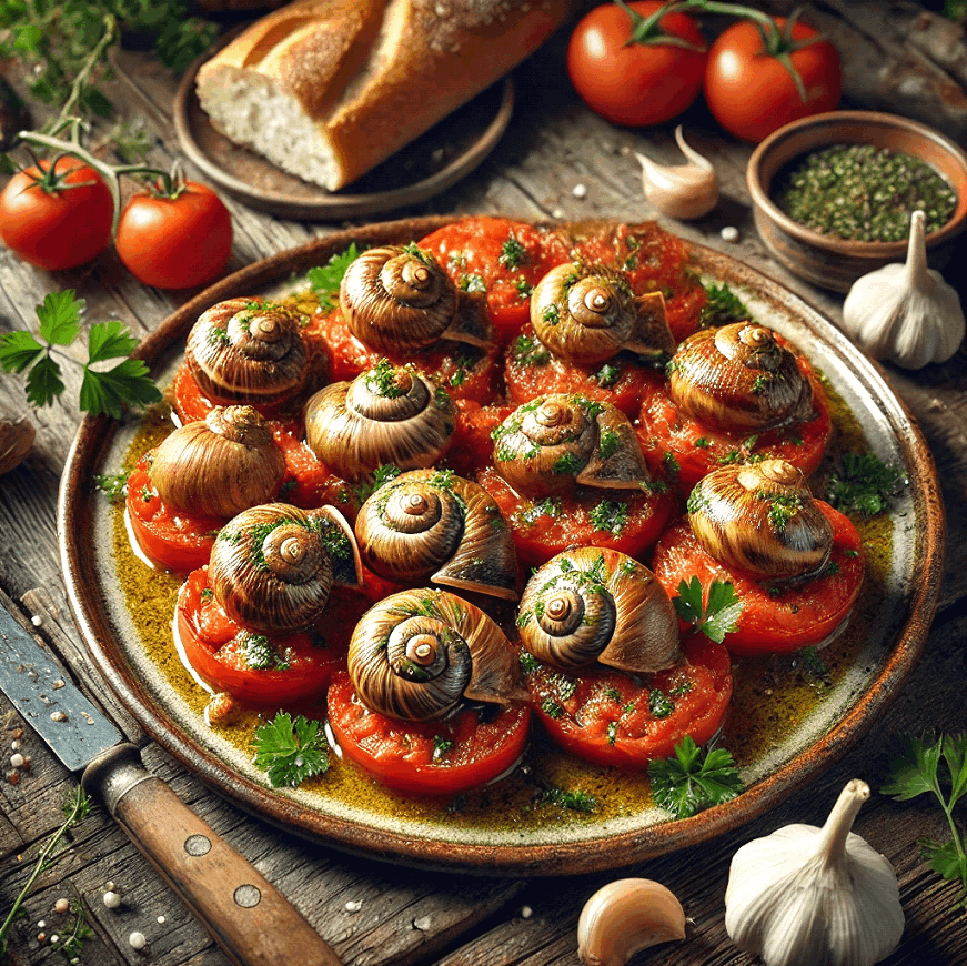 Take a culinary journey to the heart of France with Fried Snails and Tomato Confit, a dish that beautifully showcases the rustic elegance of French cooking.