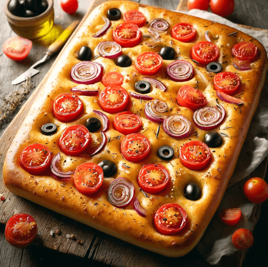 Topped with fresh pesto, juicy tomatoes, olives, and crisp onions, this Italian classic is perfect for gatherings or family meals.