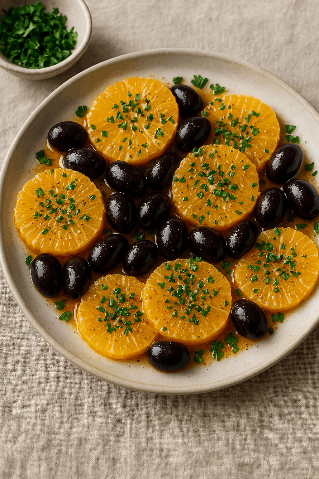 Juicy Citrus & Savory Olive Salad with Paprika & Parsley – A Bright and Refreshing Moroccan Side Dish