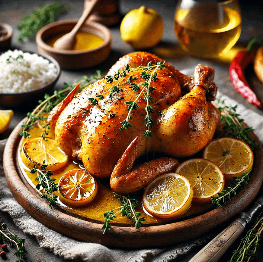 This dish is a French-inspired classic, offering tender, roasted chicken infused with refreshing and aromatic flavors.